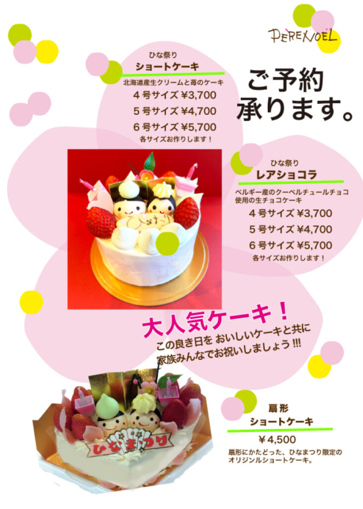 ひなまつりケーキご予約承り中です。